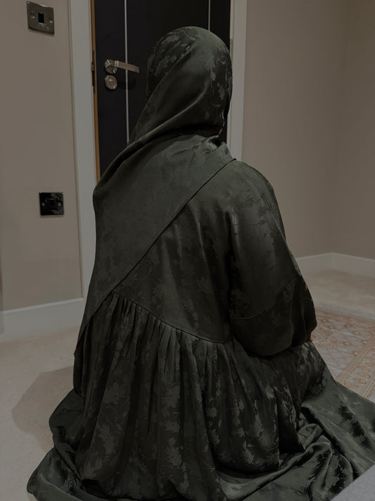 Deep Khaki Jacquard(Jamila) - Abaya with attached hijab - nursingfriendly