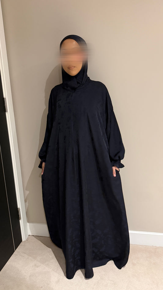 Navy Jacquard Printed (Jamila) - Abaya with attached hijab - nursingfriendly