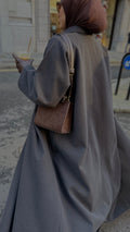 Crafted from a premium winter-weight fabric, this abaya offers warmth without compromising on flow or sophistication. It has 2 push buttons at the neck and a button at the side, to keep the design in place. The abaya can also be worn as an overcoat.