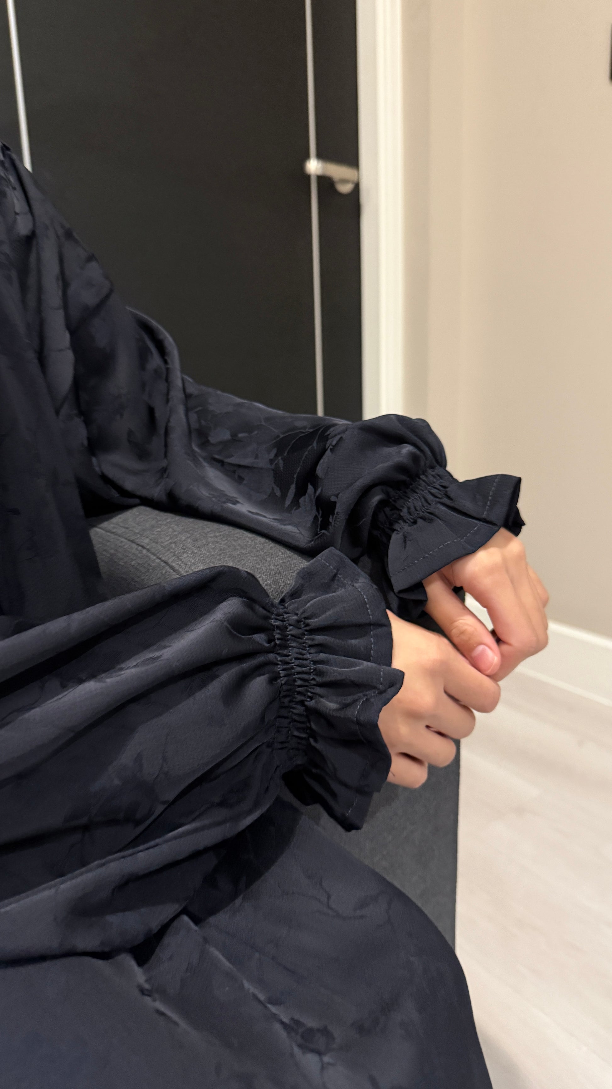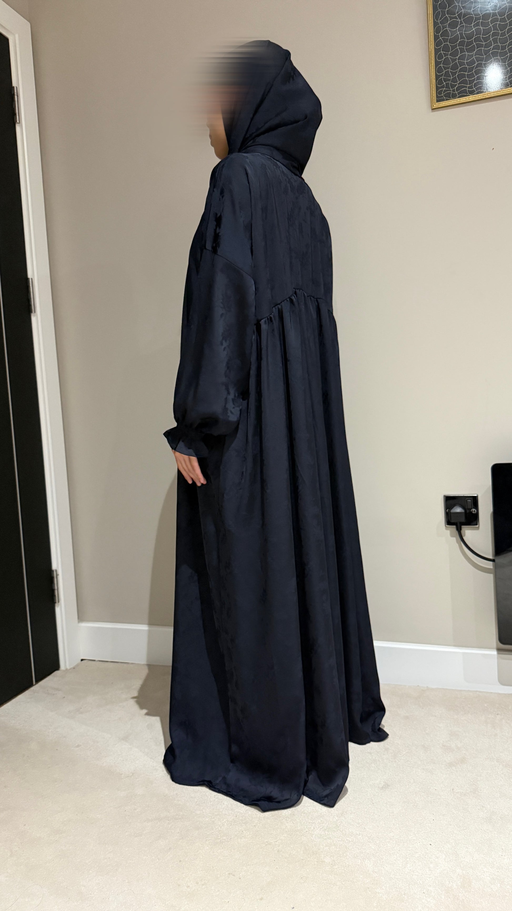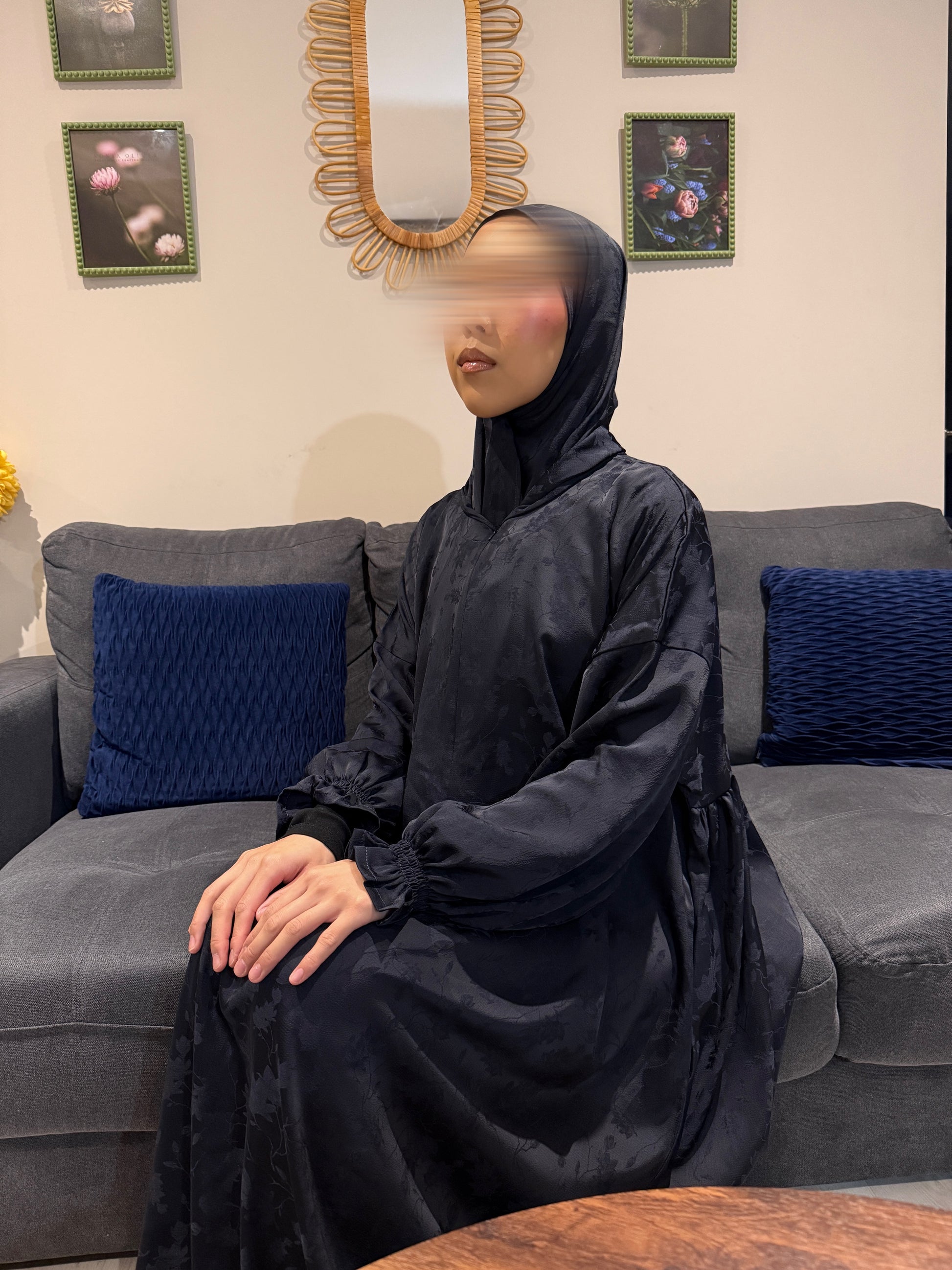 Navy Jacquard Printed (Jamila) - Abaya with attached hijab - nursingfriendly