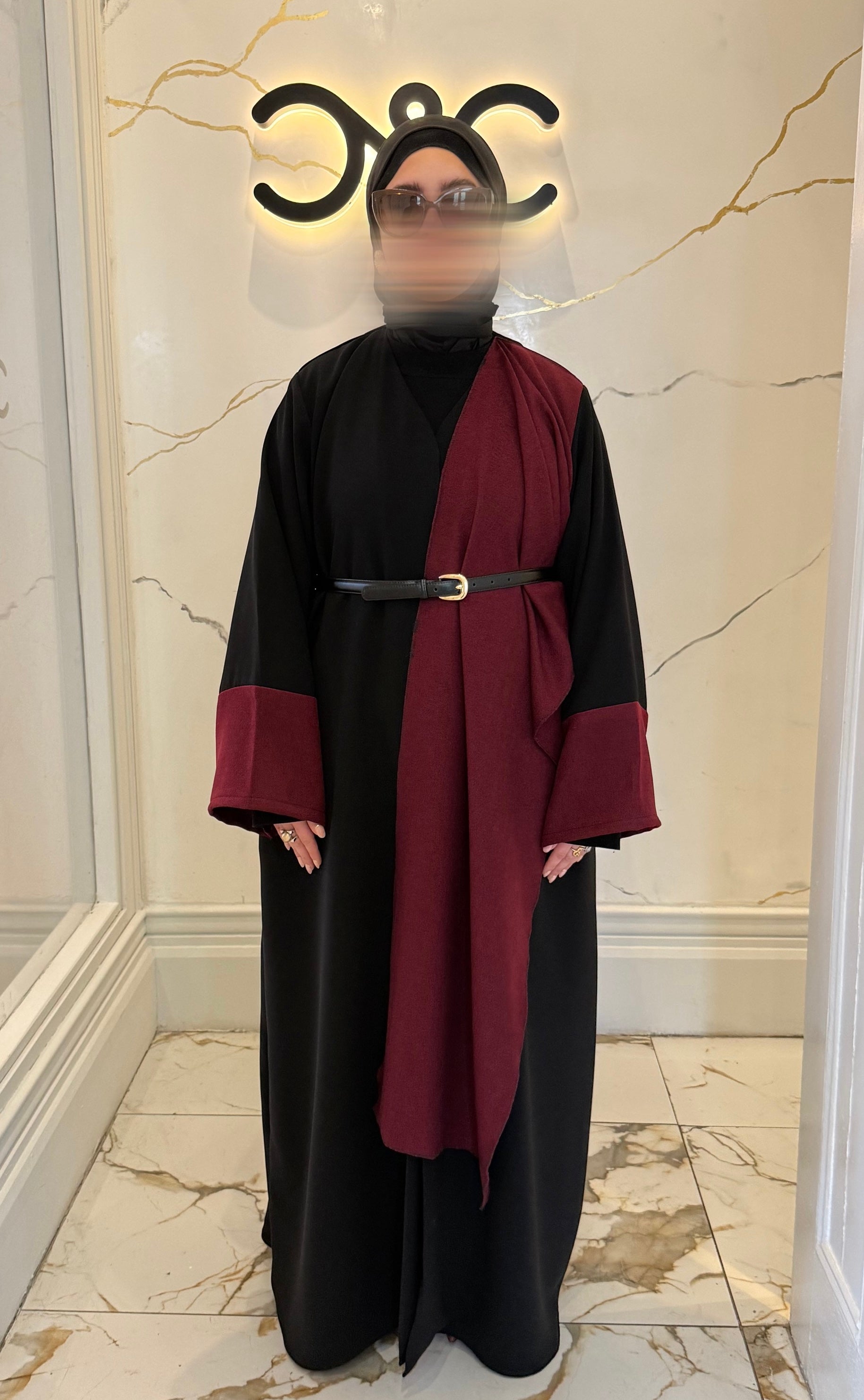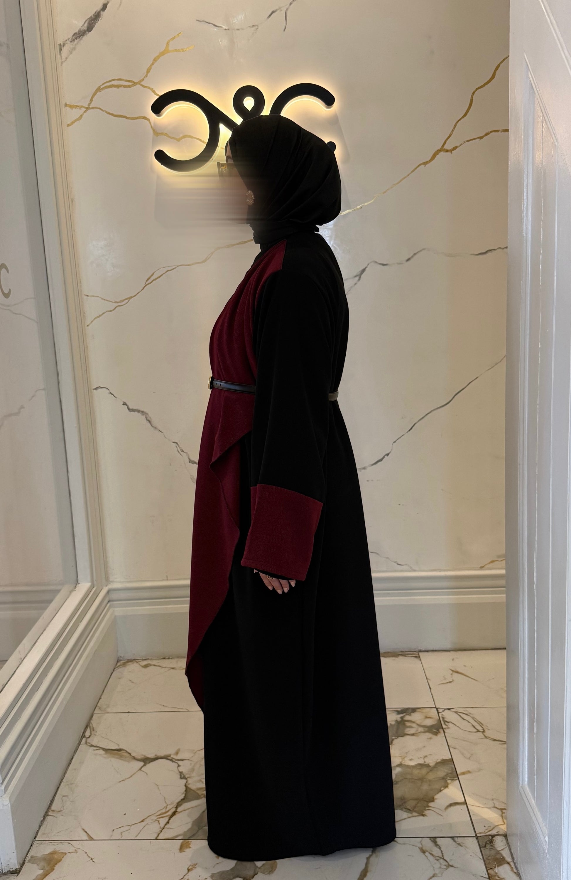Shawl Abaya - Burgundy with Contrast Sleeves - Nursing Cover
