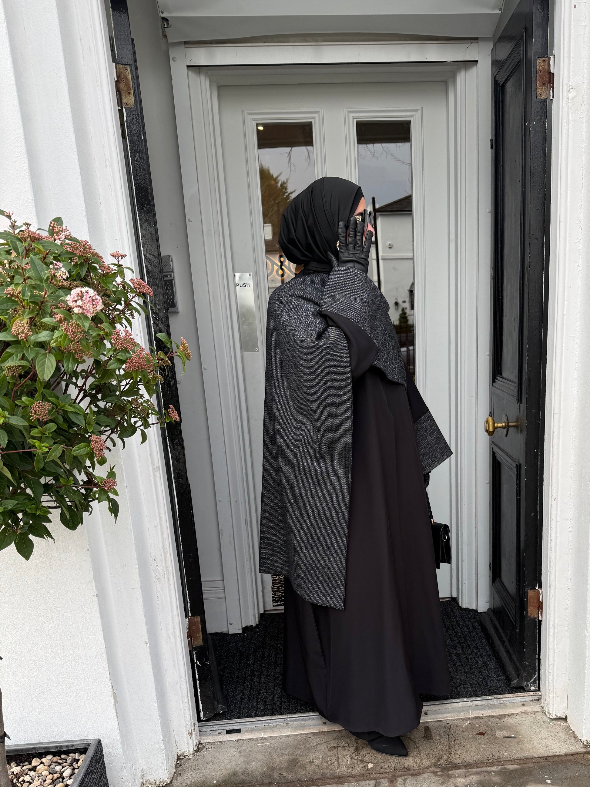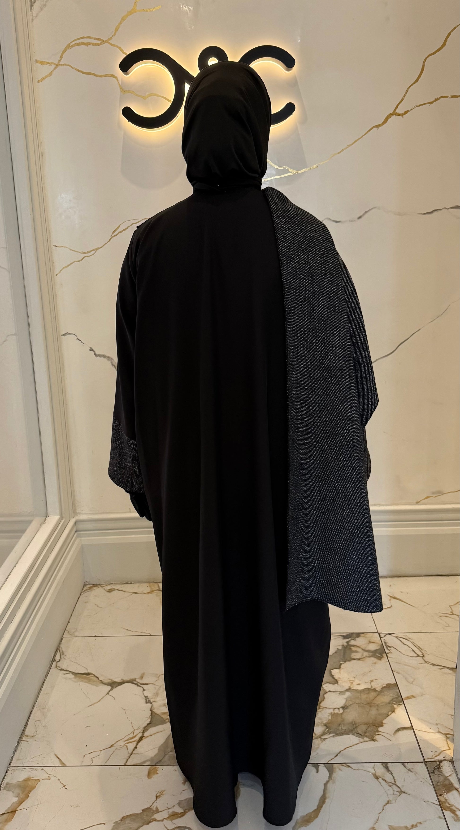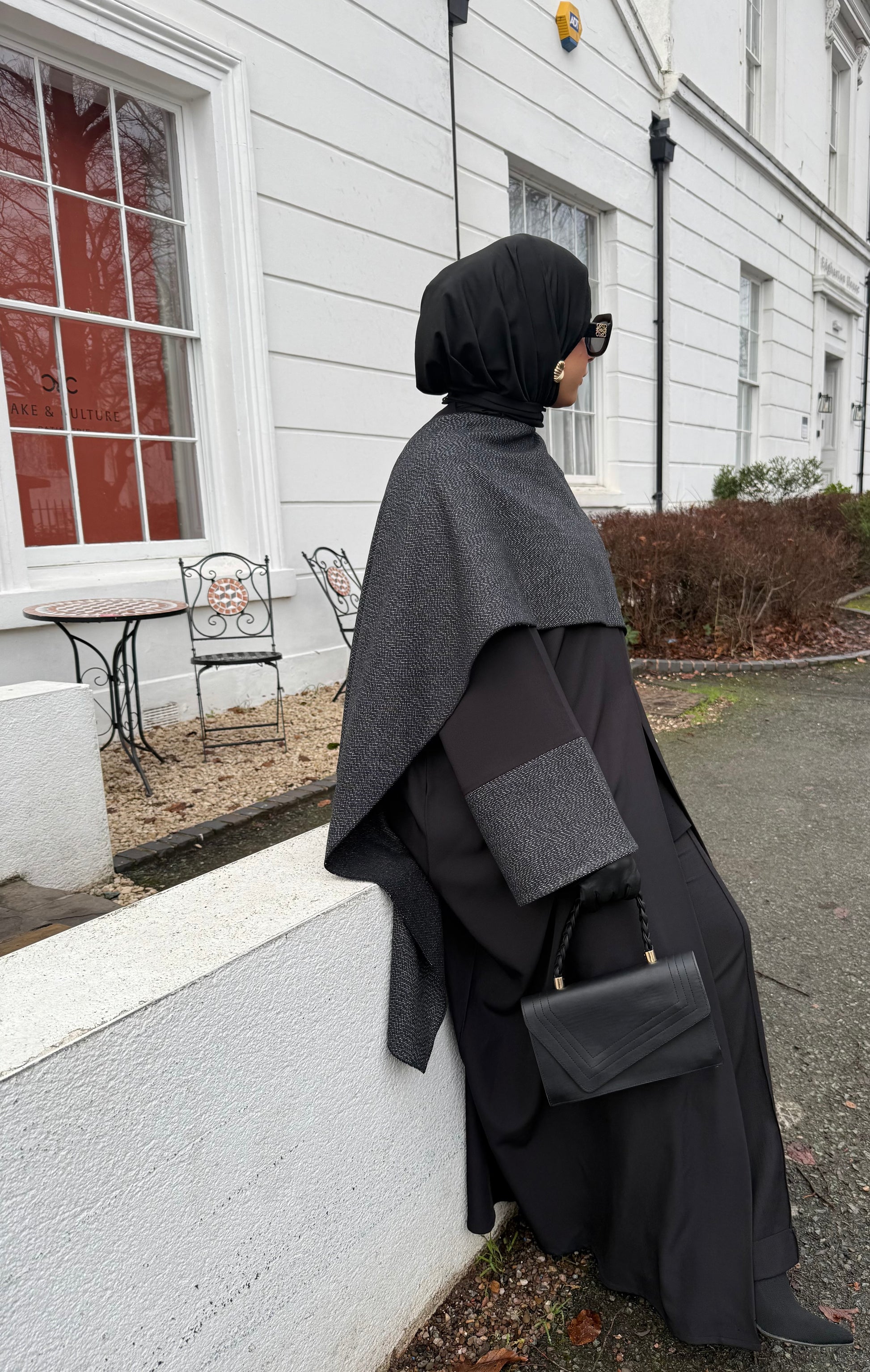 Shawl Abaya - Dark Grey Melange with Contrast Sleeves