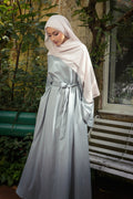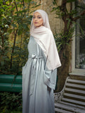 With its wide sleeves and nursing-friendly design, this piece is both elegant and functional.