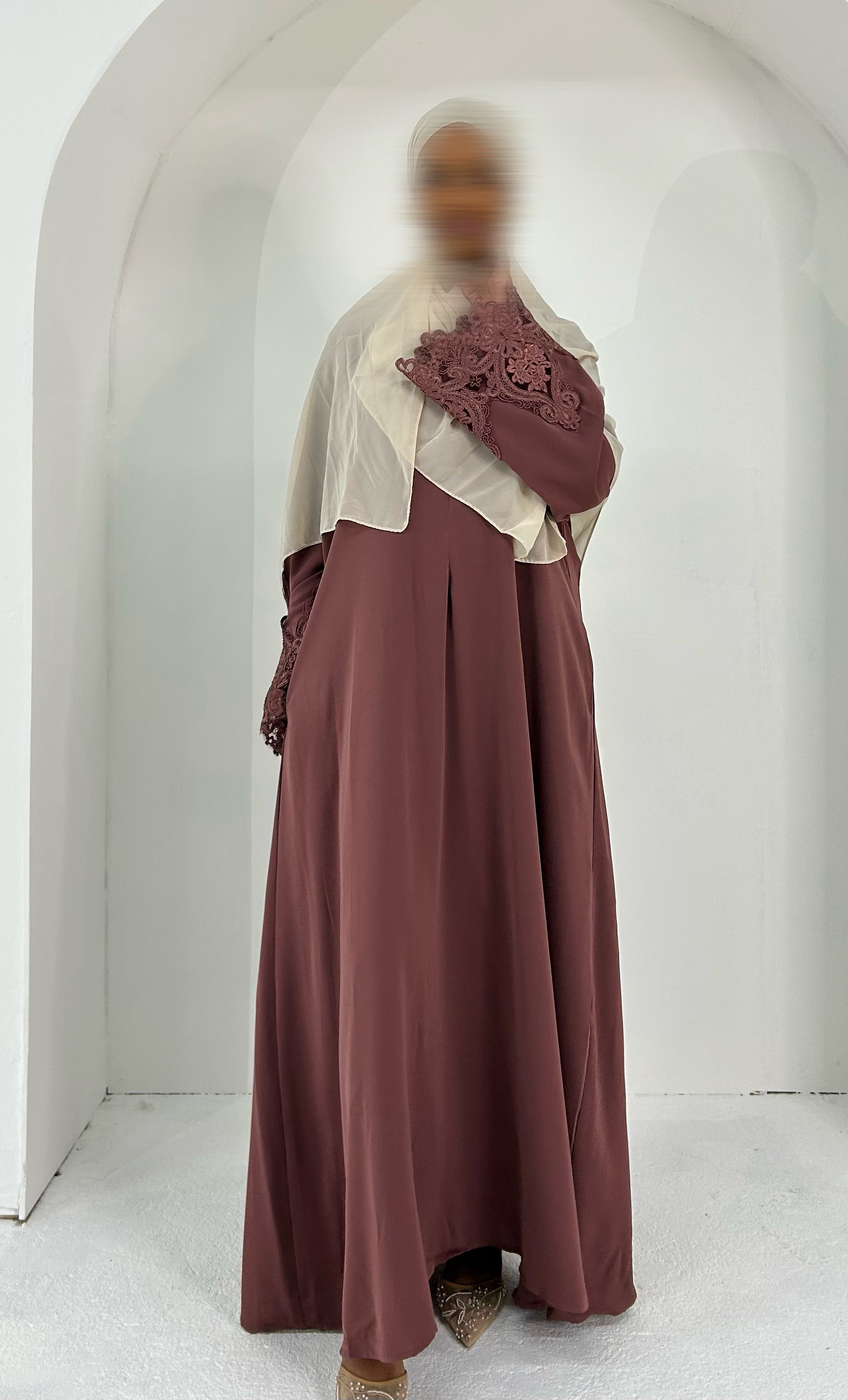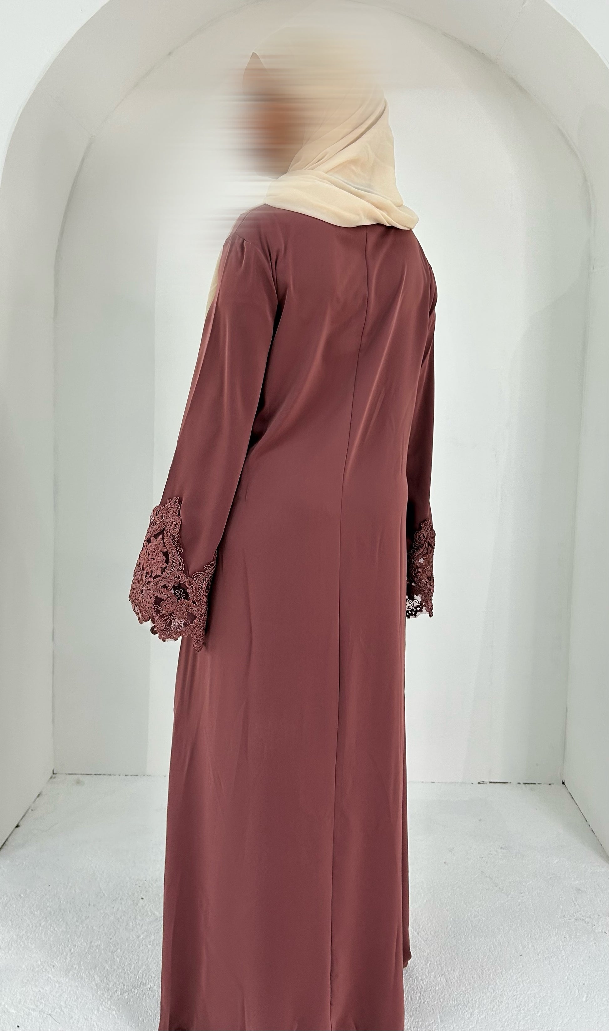 Sana Abaya Lace Sleeves with Pockets Mauve
