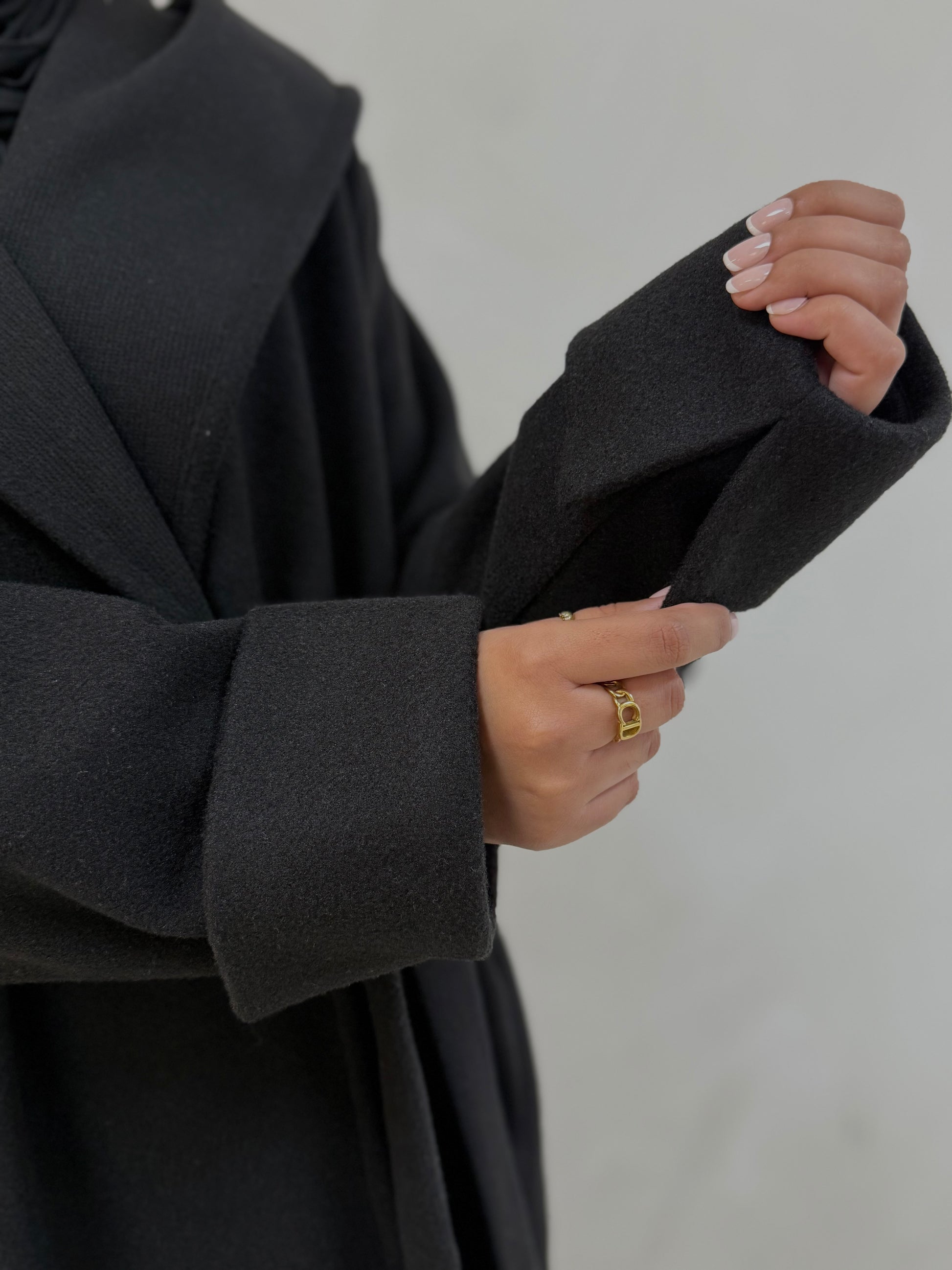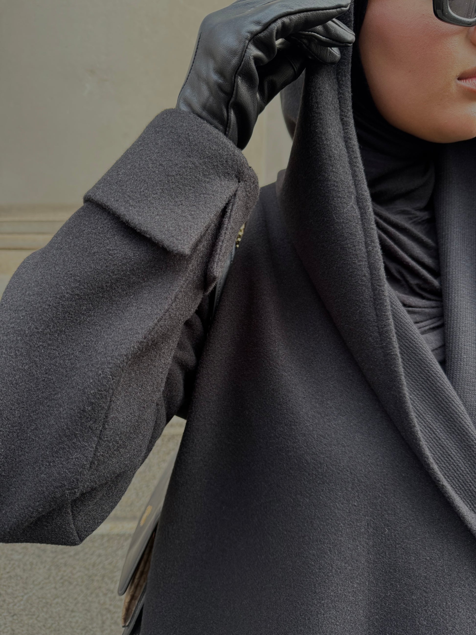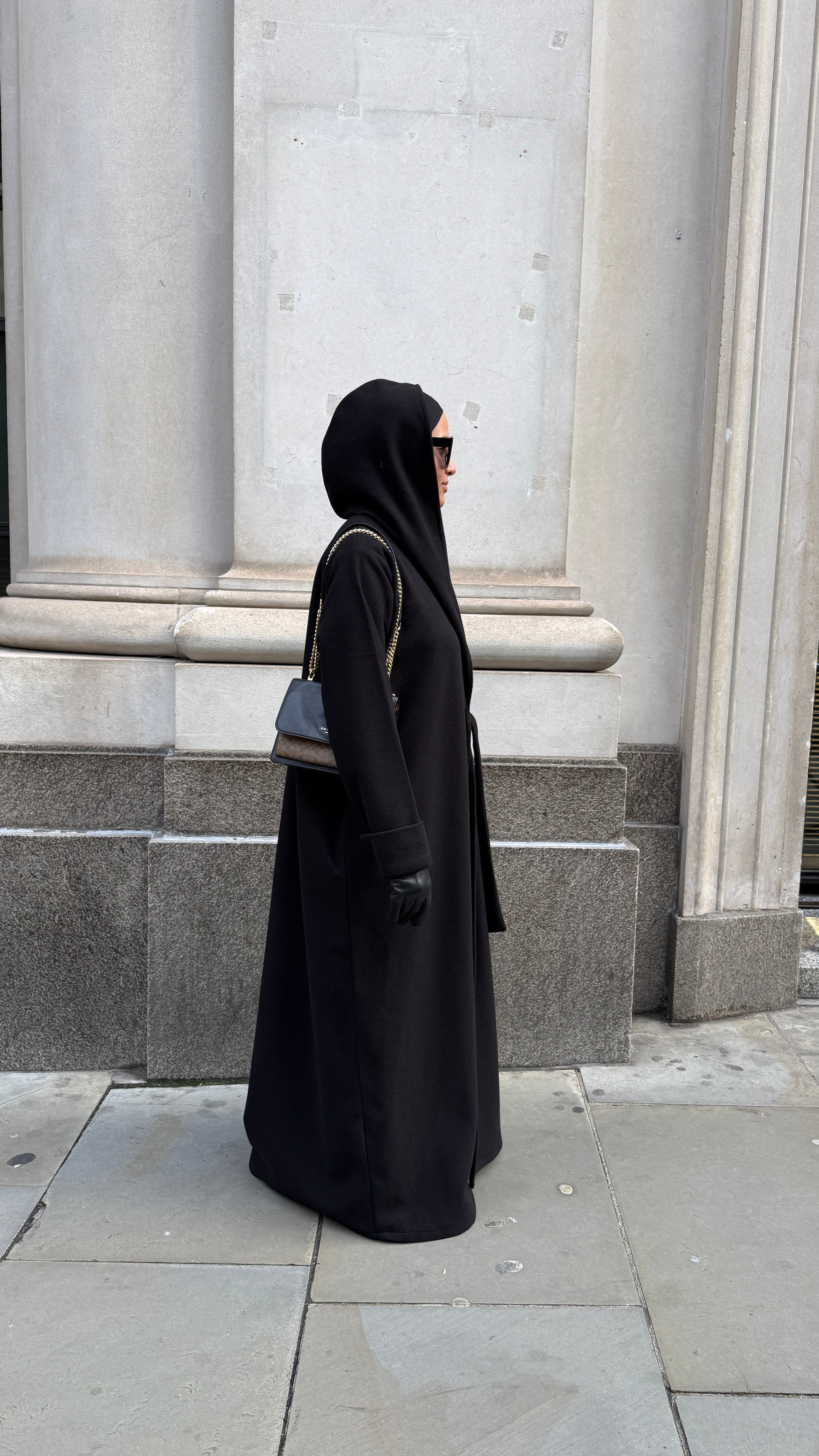 Hooded Wool-Blend Winter Abaya with Pockets & Side Tie