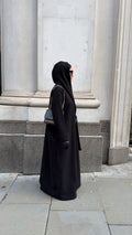This abaya combines functionality and sophistication, offering warmth without bulk. The hood and pockets make it ideal for everyday wear, while the clean design ensures a polished, timeless look.