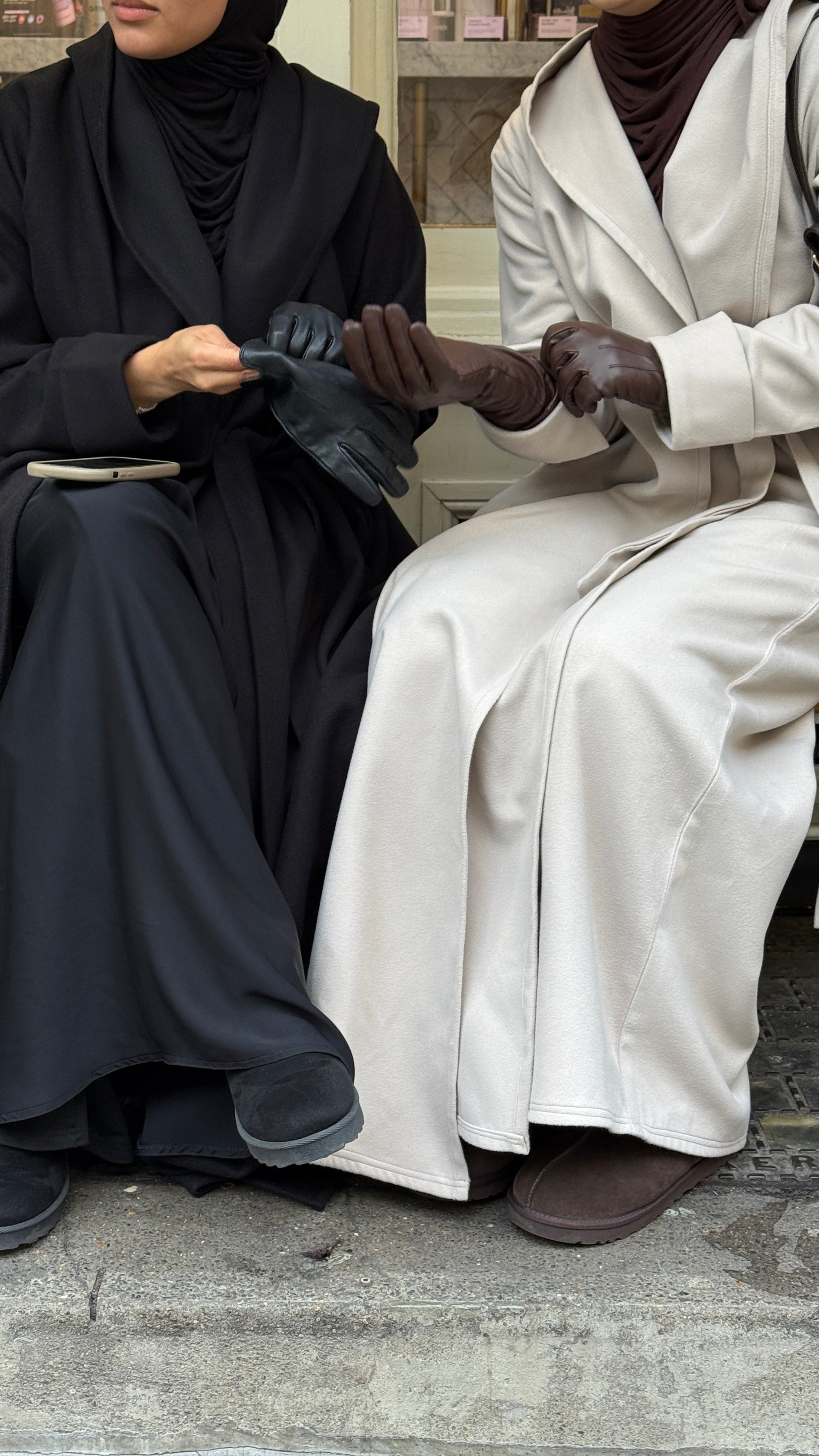 Available in timeless neutral shades, this winter abaya pairs beautifully with boots, gloves, and layered accessories—making it ideal for daily wear, travel, and chilly city days.